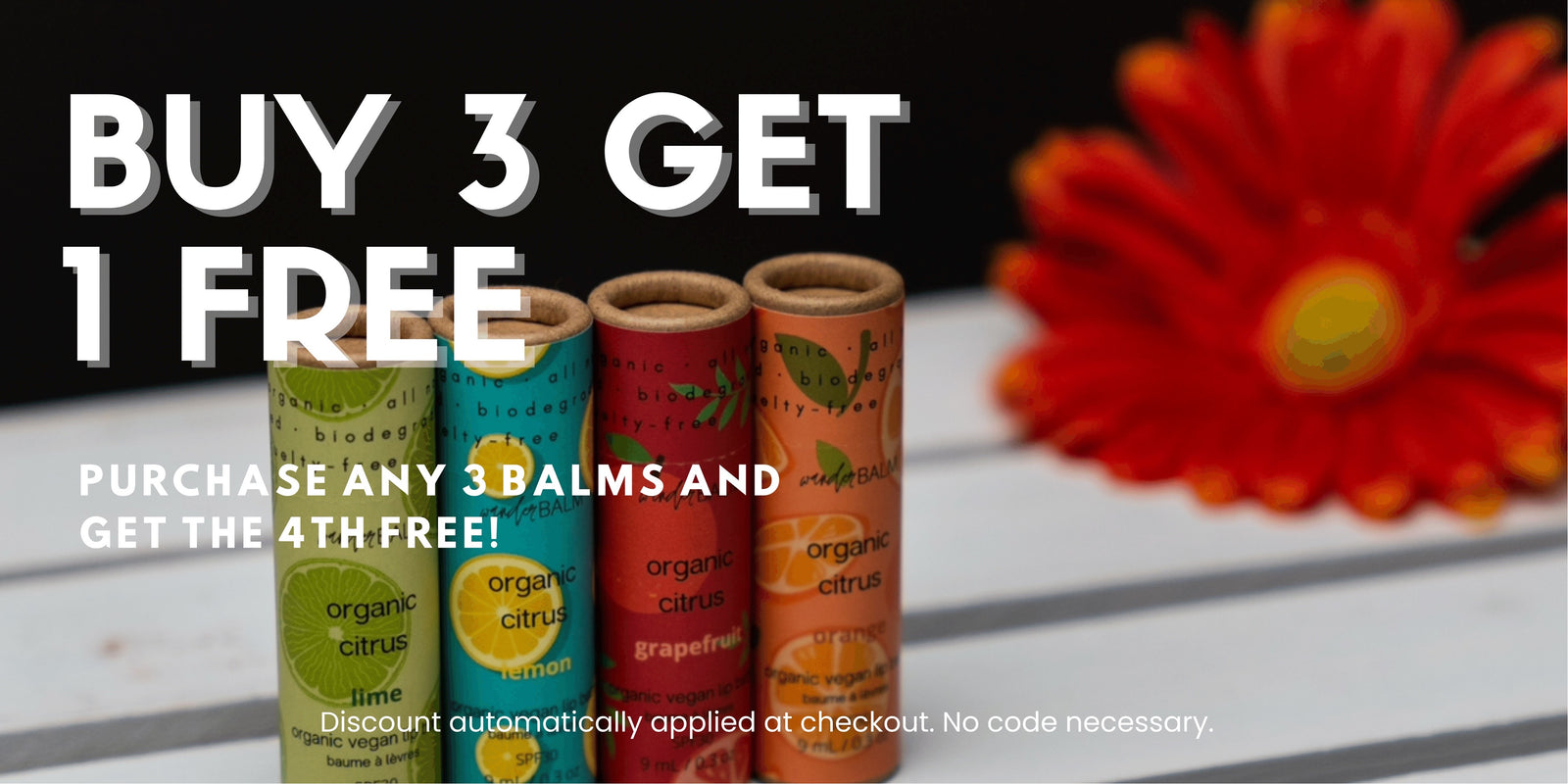 wanderBALM's all-natural and organic line of 4 deliciously scented citrus lip balms!
